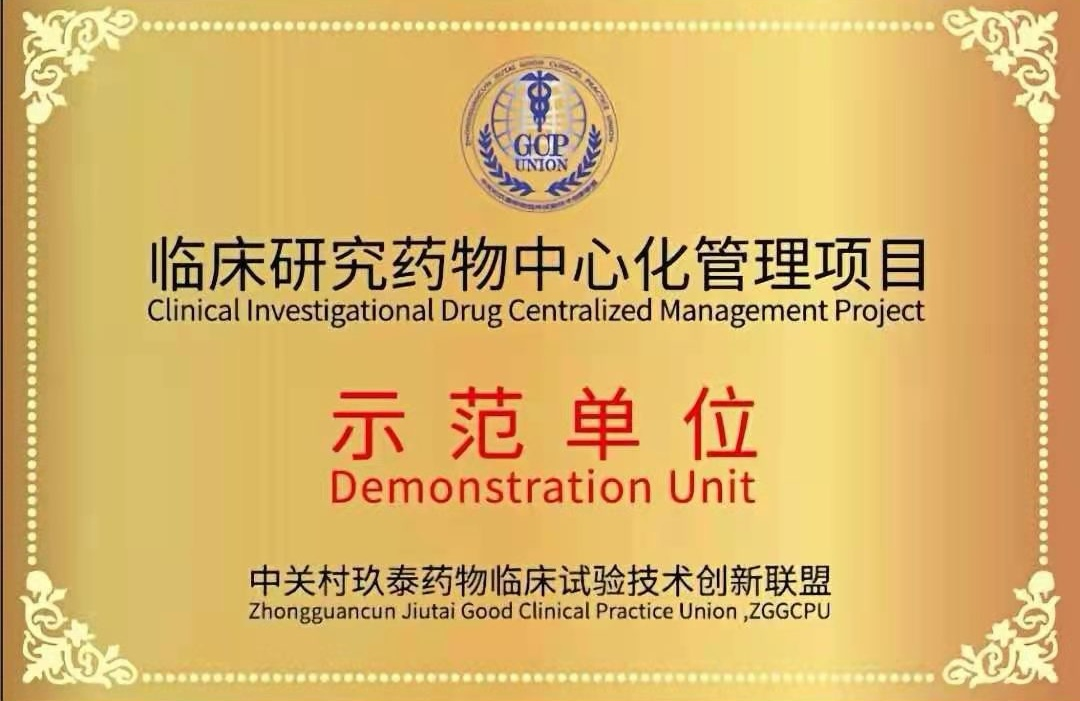 中关村玖泰药物临床试验技术创新联盟是由国内顶尖的药物临床试验机构联合发起成立的,现有药物临床试验会员单位300家,联盟制定发布了《临床研究药物中心化管理现场评估标准》。本次现场评估包括会议审查和现场检查。专家组分别对GCP中心药房管理制度及SOP、软硬件条件、人员资质、具体项目试验用药品管理资料(在研及完成的)等方面,进行了全面系统地检查,与药房工作人员进行了细致沟通。检查组对GCP中心药房规范化建设给予了充分的肯定,现场评估54项关键项目中,达标49项,不完善5项,达标率为95.4%,等级评定为优秀,被授予临床研究药物中心化管理示范单位。专家组还针对现场评估情况提出了相关意见与建议。