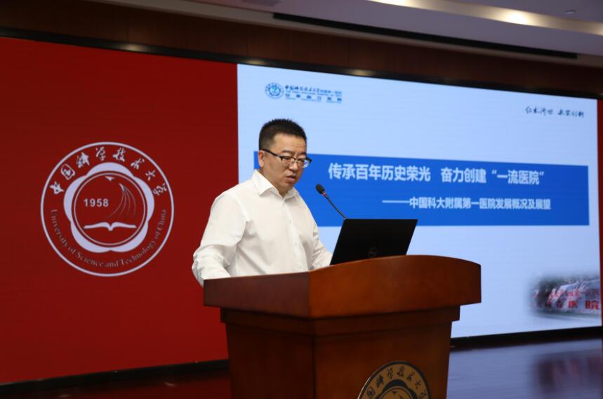 生命科学与医学部党委书记、附属第一医院党委书记刘连新以《传承百年历史荣光 奋力创建“一流医院”》为题,介绍了医院一百二十余年的发展历程,医院的发展现状和未来展望。他说,附一院作为安徽省最大的三级甲等综合医院,实行集团化管理,通过人才引进、优化布局、凝练团队、加强学科建设等措施,近年来医院业务能力不断增强,运营效率不断提升。在坚决打赢疫情防控阻击战中,附一院闻令而动,通过科技抗疫,荣获多项国家和省级奖项,向世界彰显了科大智慧。