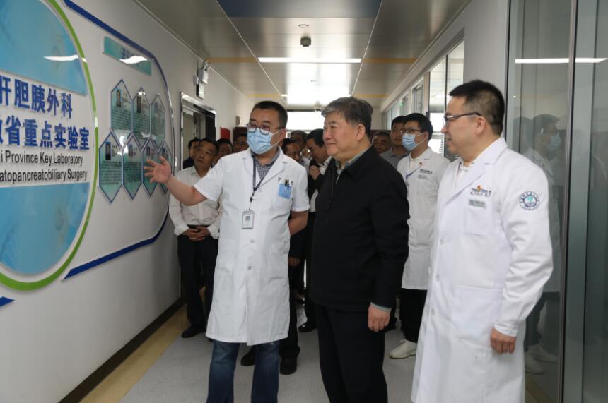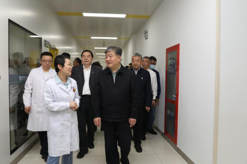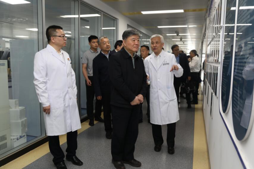 座谈会后,陈竺一行实地调研中国科学院天然免疫与慢性疾病重点实验室,中国科学院战略性先导科技专项“衰老的生物学基础和干预策略”办公室、生化及分子生物学平台、中国科学技术大学血液和细胞治疗研究所、肝胆胰外科安徽省重点实验室、移植重点实验室以及临床病理中心。