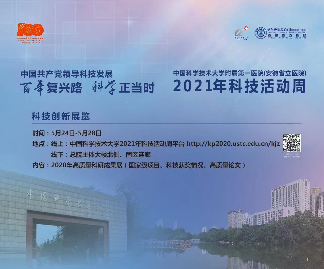 为在建党100周年之际全面展示医院高质量科研成果,营造良好学术氛围,按照省科技厅和中国科大的统一部署,5月24日至28日,我院开展了为期一周的2021年度医院科技活动周科技创新展览相关活动。