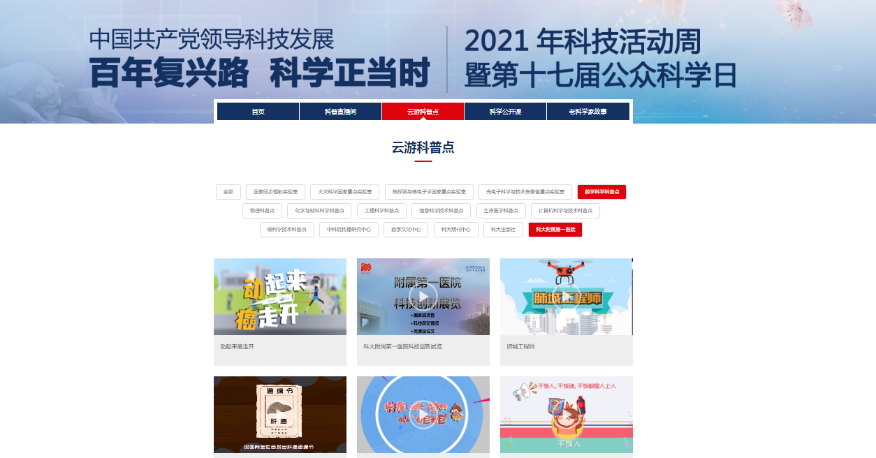 本次科技活动周的主题为“中国共产党领导科技发展:百年复兴路 科学正当时”。根据省疫情防控指挥部办公室有关规定与活动建议,本次科技活动周以科技创新展览及线上参与中国科大2021年科技活动周“云游科普点”的形式开展。