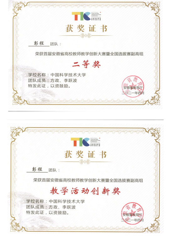 近日,安徽省教育厅举办首届安徽省高校教师教学创新大赛暨全国选拔赛,我院儿科主任医师计明红、妇产科副主任医师彭程代表大学参加比赛,经过激烈的网络评审与现场评审,计明红团队在正高组中荣获二等奖第三名,彭程团队在副高组中荣获二等奖第一名,两个团队均获得教学活动创新奖,大学荣获优秀组织奖。
