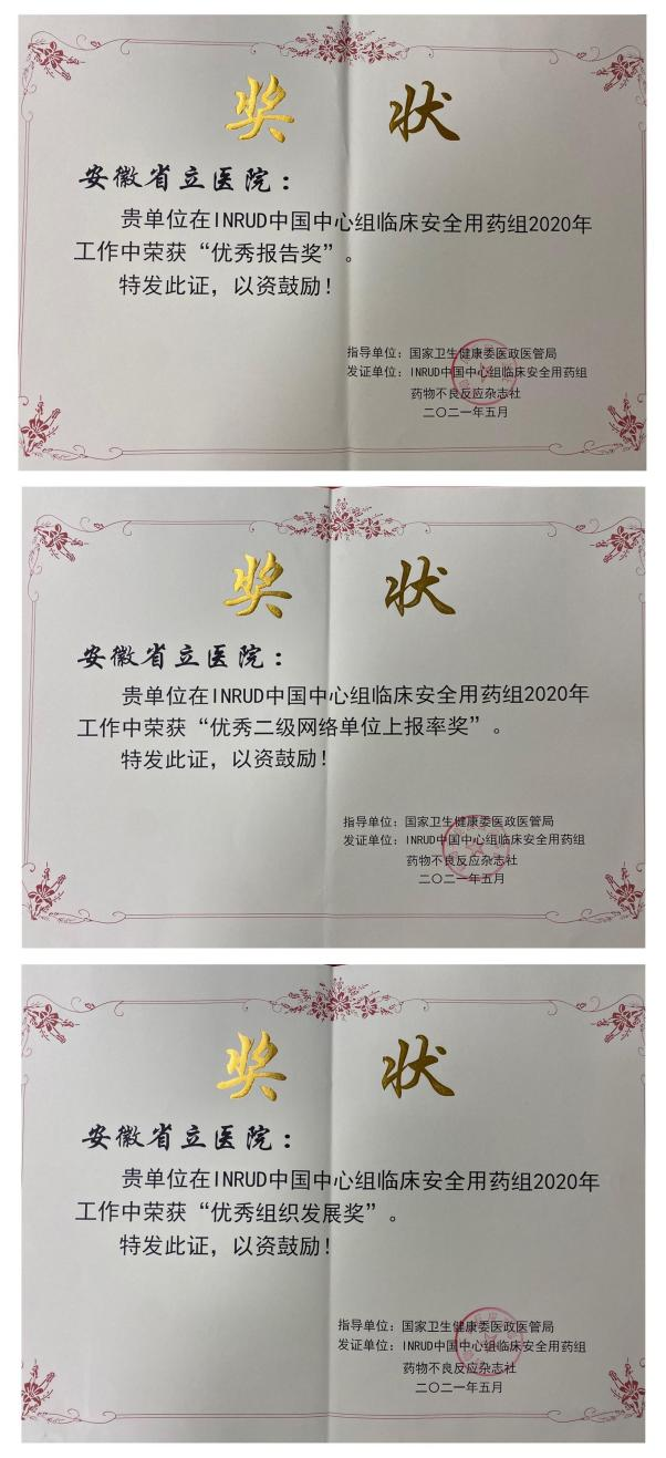 在本次大会上,我院药剂科荣获INRUD中国中心组临床安全用药组颁发的三个集体奖,分别是优秀报告奖、优秀二级网络单位上报率奖、优秀组织发展奖。