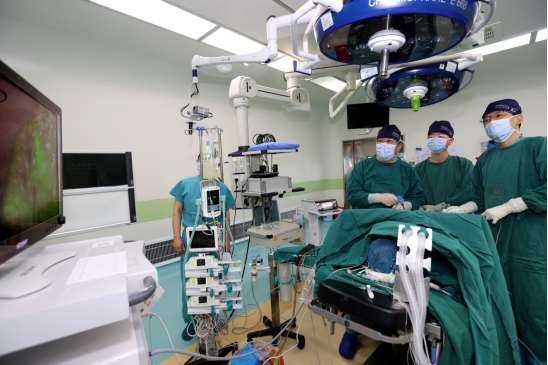 ▲麻醉科王胜主任团队正在为患者实施麻醉