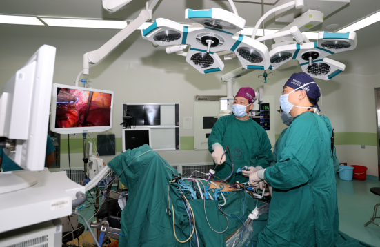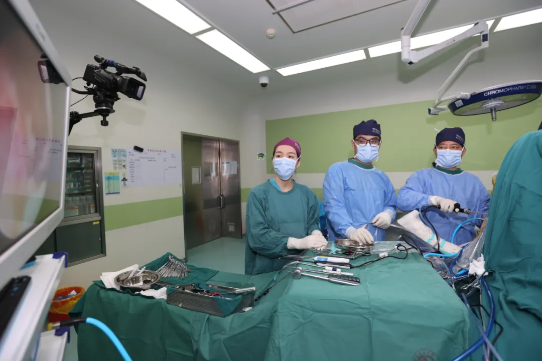 ▲妇产科副主任夏百荣进行腹腔镜下宫颈癌根治术演示