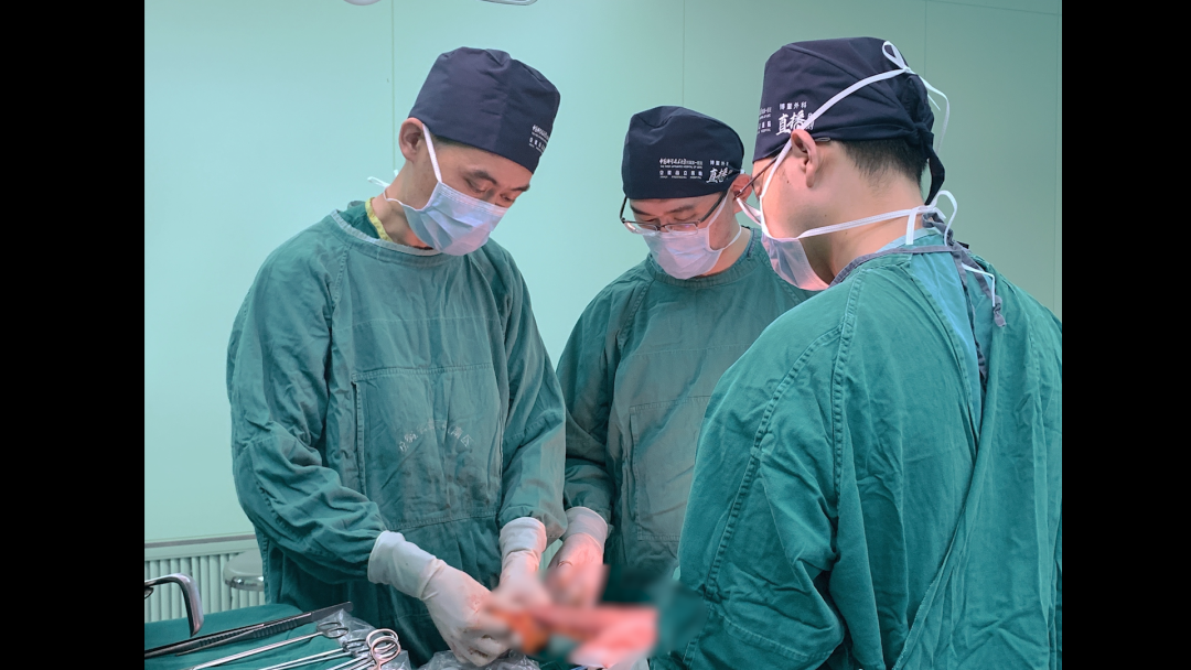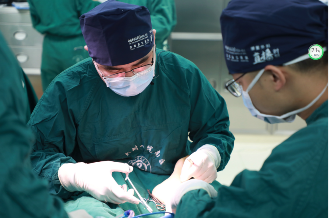 ▲骨科手足外科负责人鹿亮进行改良Chevron截骨+腓肠肌松解术治疗中重度拇外翻缝合术演示
