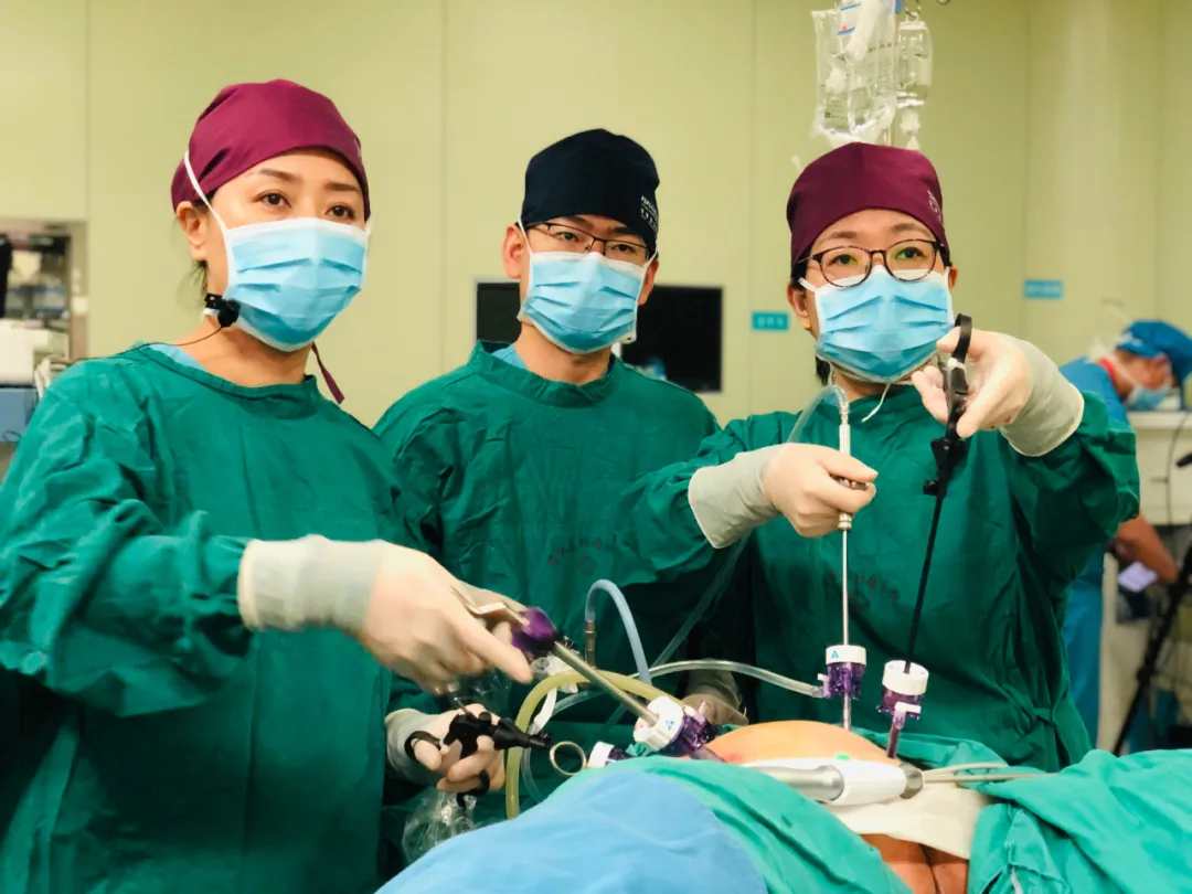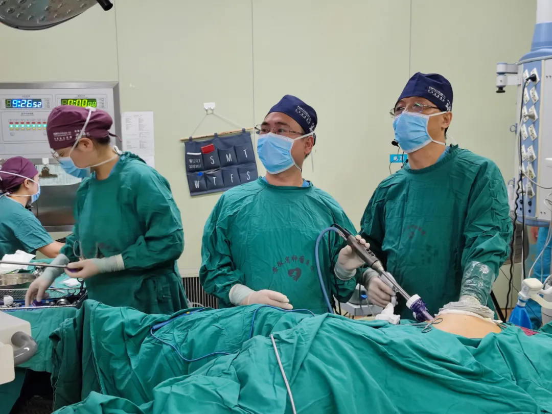 ▲妇科病区主任陈纲进行腹腔镜探查+子宫病损微波消融术演示