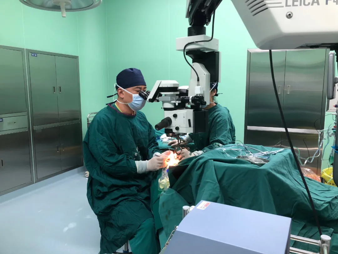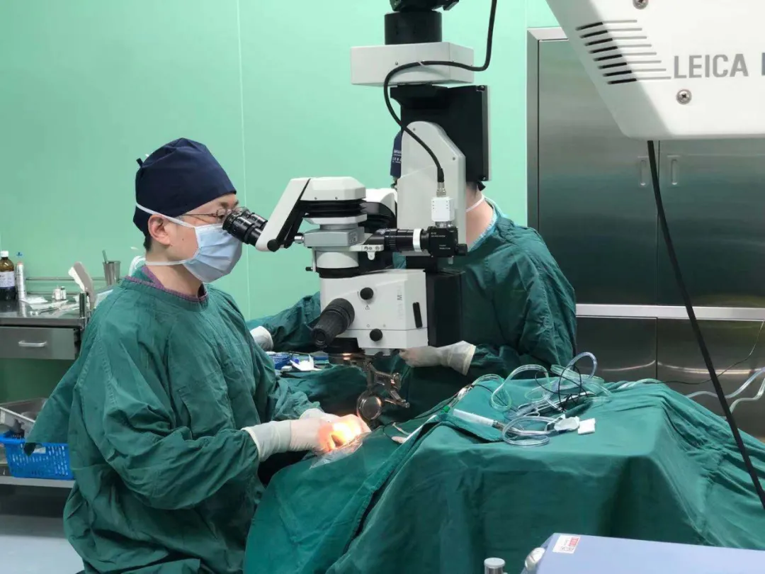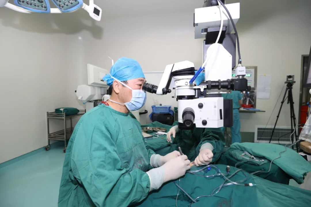 ▲眼科眼底病科主任董凯进行玻璃体视网膜联合手术演示