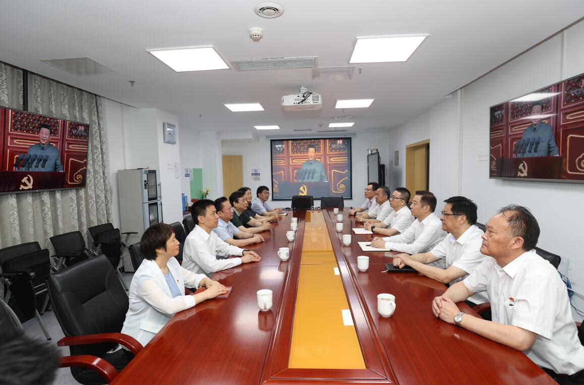 7月1日上午8时,庆祝中国共产党成立100周年大会在北京天安门广场隆重举行,中共中央总书记、国家主席、中央军委主席习近平发表重要讲话。院领导班子成员在行政楼七楼东会议室,集中观看庆祝中国共产党成立100周年大会直播。