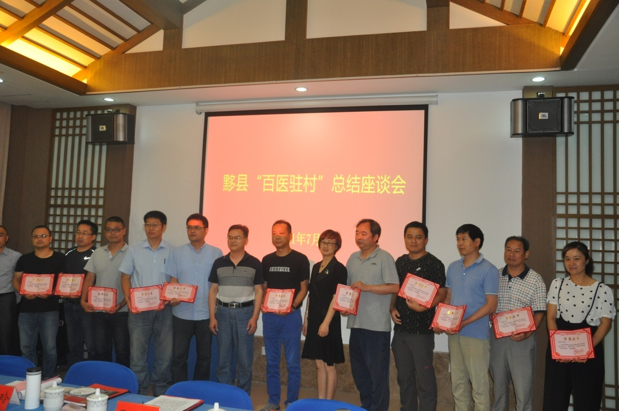 会上,驻村所在地卫生院对驻村医生的工作给予了高度评价,黟县县委副书记、统战部长朱永胜和县政府副县长刘菁兰同志为12名驻村医生颁发“特别村医贡献奖”荣誉证书,感谢他们为当地健康扶贫工作做出的突出贡献。