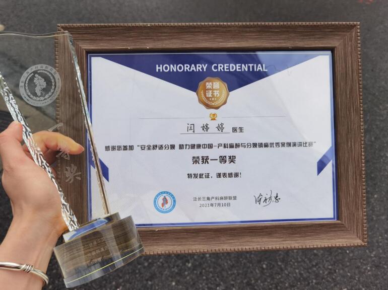 为更好落实国家卫健委“关于开展分娩镇痛试点工作的通知”精神,推动分娩镇痛规范化临床应用工作,提高产妇围术期安全。泛长三角产科麻醉高峰论坛暨危重妇产科围术期管理会议于7月10日举办了“分娩镇痛优秀案例”演讲比赛。我院麻醉科在学术主任柴小青和科主任王胜的指导下,由疏树华主任带队,青年医生闫婷婷参加了此次演讲比赛,获得一等奖。