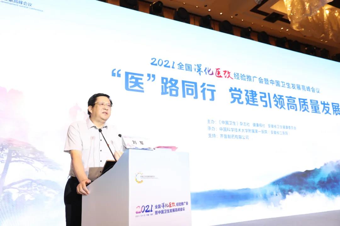 2021年,新一轮深化医药卫生体制改革步入第12个年份,正站在高质量发展赛道的全新起点。7月24日,由《中国卫生》杂志社、健康报社、安徽省卫生健康委主办,中国科学技术大学附属第一医院(安徽省立医院)承办的2021全国深化医改经验推广会暨中国卫生发展高峰会议在安徽省合肥市召开。