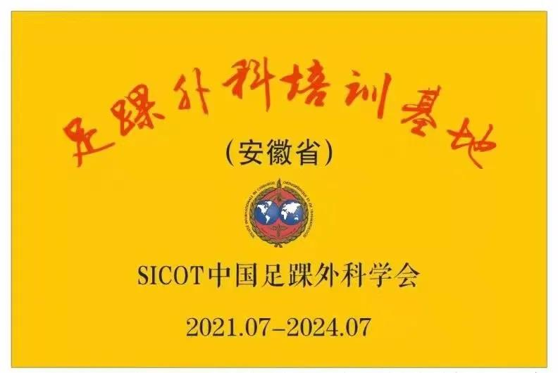 大会还举行了SICOT中国足踝外科学会足踝外科培训基地(安徽省)的授牌仪式。SICOT中国部足踝外科学会主任委员俞光荣教授,SICOT中国部足踝外科学会副主任委员武勇教授,SICOT中国部足踝外科学会副主任委员苗旭东教授,安徽省医师协会骨科医师分会名誉主任委员孔荣教授,我院副院长方诗元、骨科主任尚希福教授,安徽省医师协会骨科医师分会秘书长禹德万教授,我院手足外科鹿亮主任和刘彬主任参与了授牌仪式。