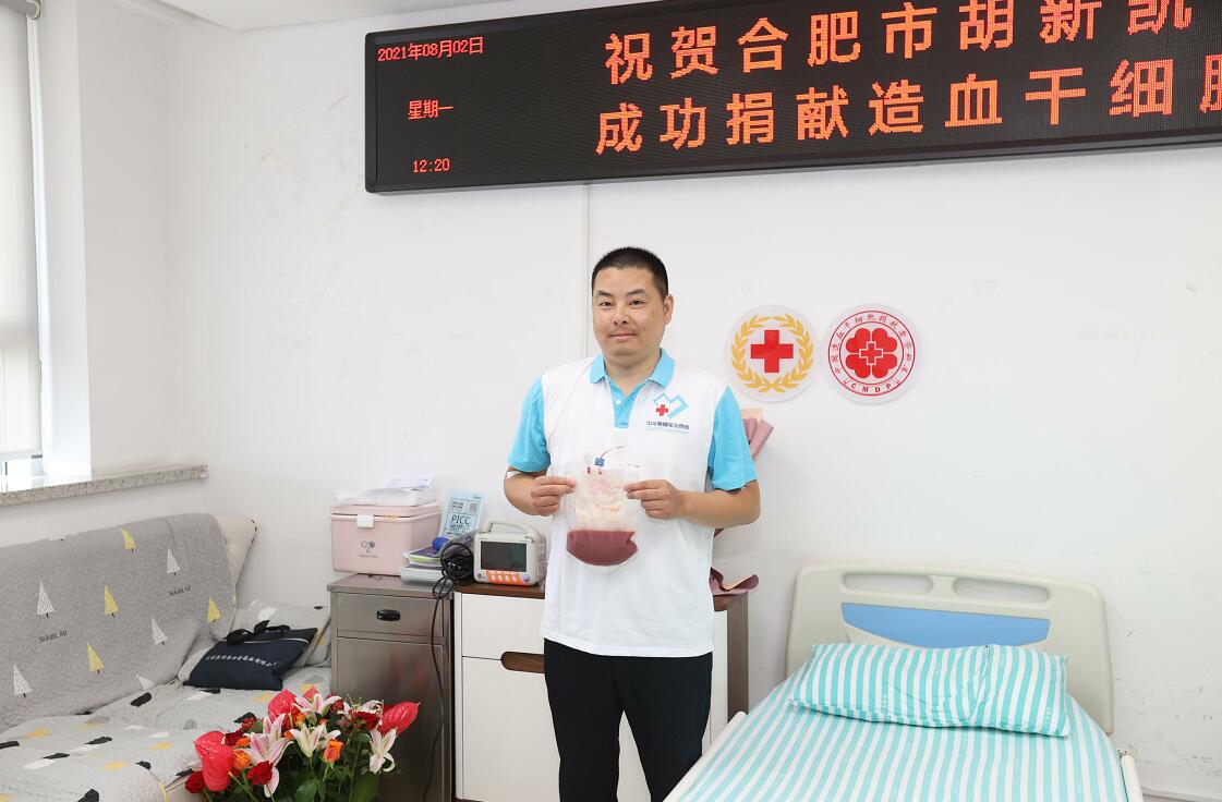 8月2日上午,在中国科大附一院血液内科,经过4天的外周血动员和4个小时的采集,刚刚度过40岁生日的中国科大附一院感染病院检验科主管技师胡新凯成功捐献造血干细胞270毫升,这份“生命的种子”第一时间运送到广州中山大学附属第一医院,救治正在那里等待移植救命的一位白血病患者。