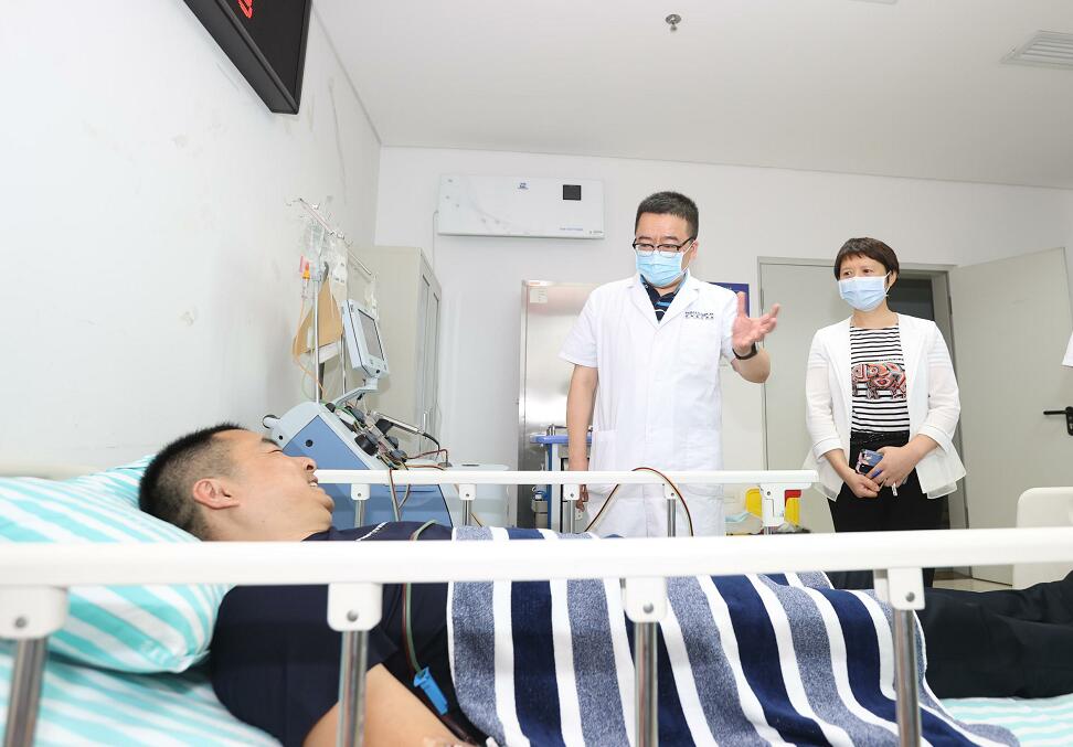 中国科大附一院党委书记刘连新,党委委员、工会主席储晓红前往采集点慰问胡新凯,并送上鲜花和慰问金,代表医院感谢胡新凯的助人义举、大爱善举。