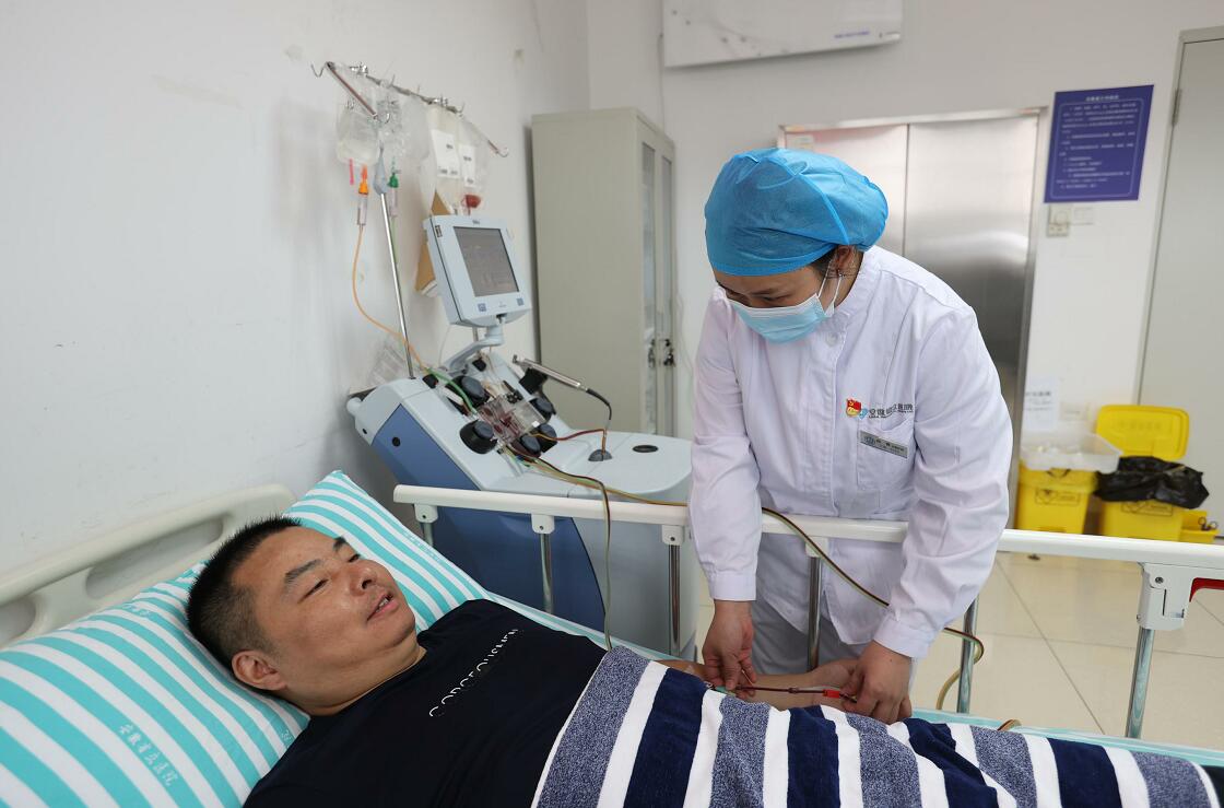 7月28 日,胡新凯住院,开始捐献前的准备,注射动员剂,抽血化验等等,8月2日上午,在血液内科三病区采集造血干细胞的专用病房里,胡新凯开始了造血干细胞的采集。