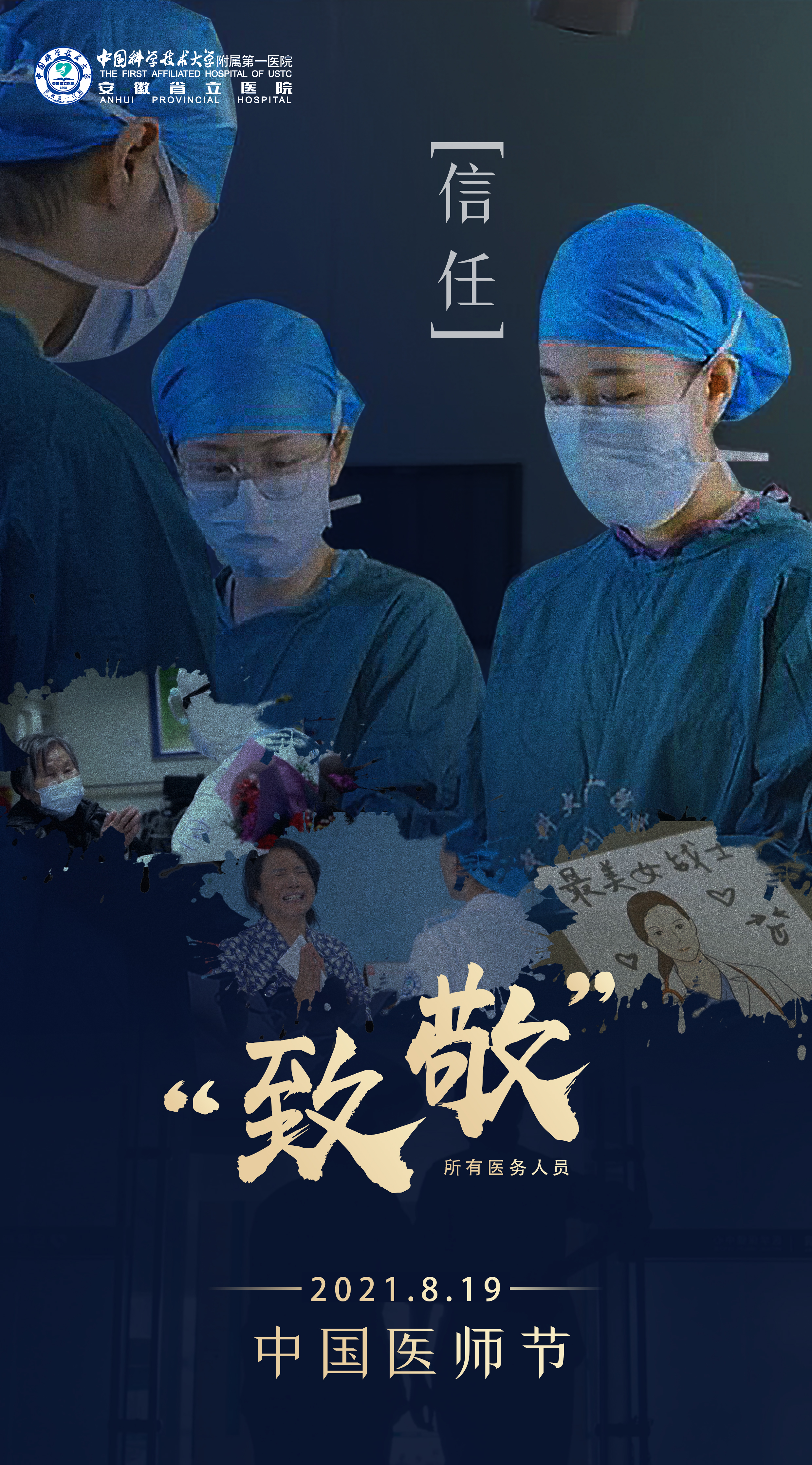 习近平总书记表示,“广大医务工作者是人民生命健康的守护者。”“百年华诞同筑梦 医者担当践初心”2021年8月19日是第四个中国医师节,我院原创MV《信任》通过对一线医务人员日常工作的生动描绘,致敬奋战在医疗战线的每一名医务工作者,传达医生和病患彼此信任共同抗击疾病的动人感情。