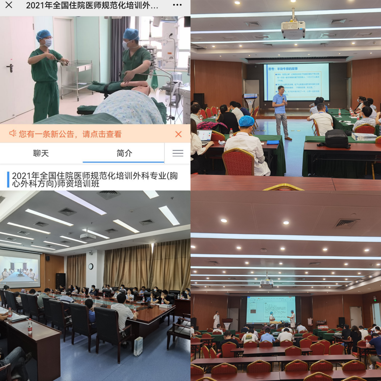 此次培训班以理论授课和工作坊相结合的形式,理论授课包括住培制度与住培质量建设、医学人文素养的培养和专科技能培训,夯实住培基础强化考前管理、规范病例书写培养临床思维、以住培质量为核心,强化胸心外科基地建设与管理等全国各大医院知名专家就住院医师规范化培训管理及教学技巧进行了分享交流。