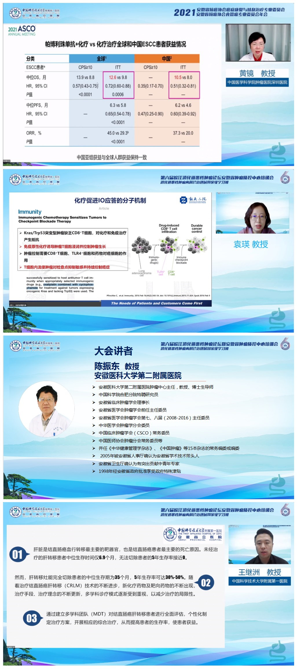 7日上午进行恶性肿瘤规范化诊疗会场,我院西区院长、安徽省肿瘤质控中心主任钱立庭教授致开场辞,对各位参会专家及观看直播的同道表示感谢,对省、市级肿瘤质控中心专家组及积极参与全省肿瘤质控工作的各位专家表示谢意,肿瘤质控中心积极推动着我省肿瘤规范化诊疗提升,最后预祝大会圆满成功。随后,安徽医科大学第二附属医院陈振东教授、安徽医科大学第一附属医院孙国平教授、顾康生教授、我院潘跃银教授、蚌埠医学院第一附属医院汪子书教授、皖南医学院弋矶山医院盛莉莉教授围绕消化道肿瘤的规范化诊疗进行精彩授课,并与参会专家进行热烈讨论。