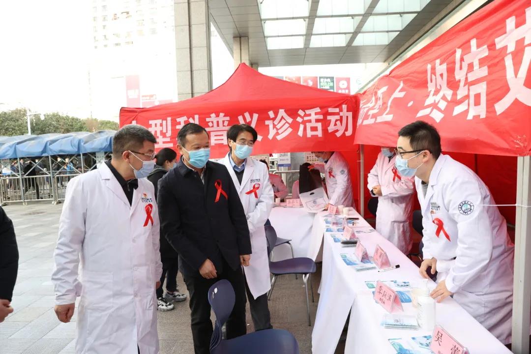 为实现HIV感染群体早发现、早治疗,也让普通民众更好地掌握艾滋病防治知识,树立“每个人是自己健康第一责任人”的理念。12月1日“艾滋病日”到来之际,安徽省艾滋病诊疗中心、中国科大附一院(安徽省立医院)感染病院区在我院门诊广场举行大型公益宣传义诊活动。活动现场,来自感染病科、肝胆外科、妇产科、骨科、眼科、血液科、皮肤科、神经内科、介入科、肾脏内科、内分泌科、消化内科、肛肠科、口腔科、检验科等十余个学科的专家为群众答疑解惑,普及防“艾”知识。