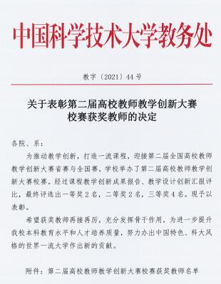 12月19日,中国科大第二届教师教学创新大赛在科大东区举行。我院参赛代表队在比赛中,以先进的教学理念、丰富的教学内容、创新的教学方法方式,获得了专家评委的高度评价。最终,我院肾内科王艳团队、妇产科彭程团队分别斩获一等奖和二等奖。