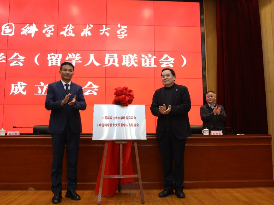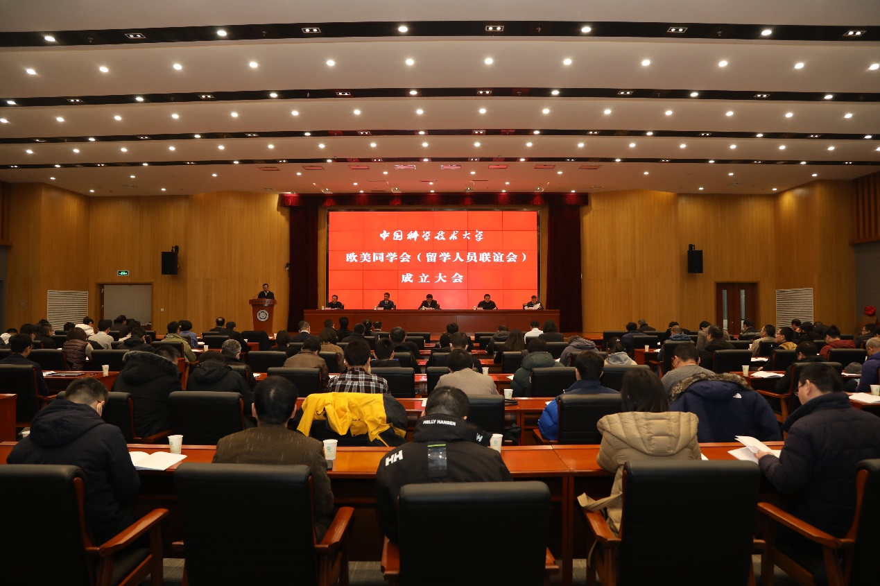 1月7日上午,中国科学技术大学欧美同学会(留学人员联谊会)成立大会在校物质科研楼召开。安徽省委统战部副部长王琦,安徽省委教育工委委员、省教育厅副厅长张庚家到会祝贺并讲话。校党委书记舒歌群出席会议并讲话,校长包信和院士与王琦共同为校欧美同学会揭牌。校党委常委、统战部部长褚家如主持大会。副校长、中科院院士、农工党安徽省委副主委杨金龙当选首任会长,院党委书记刘连新当选副会长,我院23名专家成为首批会员。我院会员代表、党委宣传与统战部负责同志参会。