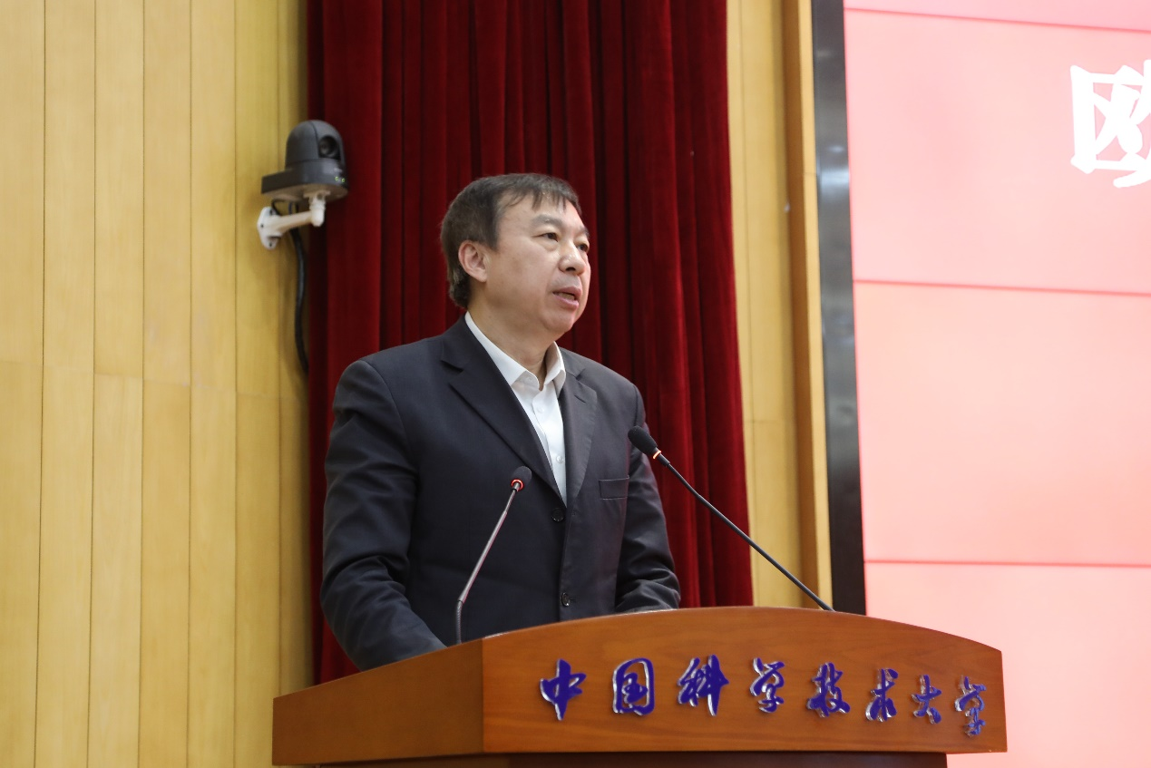 他希望校欧美同学会(留学人员联谊会)提高政治站位,坚持以习近平新时代中国特色社会主义思想为指导,引导广大留学人员深入学习十九届六中全会精神,争做“两个确立”忠诚拥护者、“两个维护”忠诚践行者,画好爱国报国的最大同心圆。不断加强自身建设,积极搭建平台,把广大留学人员紧密团结在党的周围,构建适应新时代要求的留学人员组织。发挥独特优势,切实担负起新时代赋予的新使命,充分发挥留学报国人才库、建言献策智囊团、民间外交生力军的作用,为建成中国特色、科大风格的世界一流大学,为全面建设社会主义现代化国家、实现中华民族伟大复兴的中国梦贡献智慧和力量。