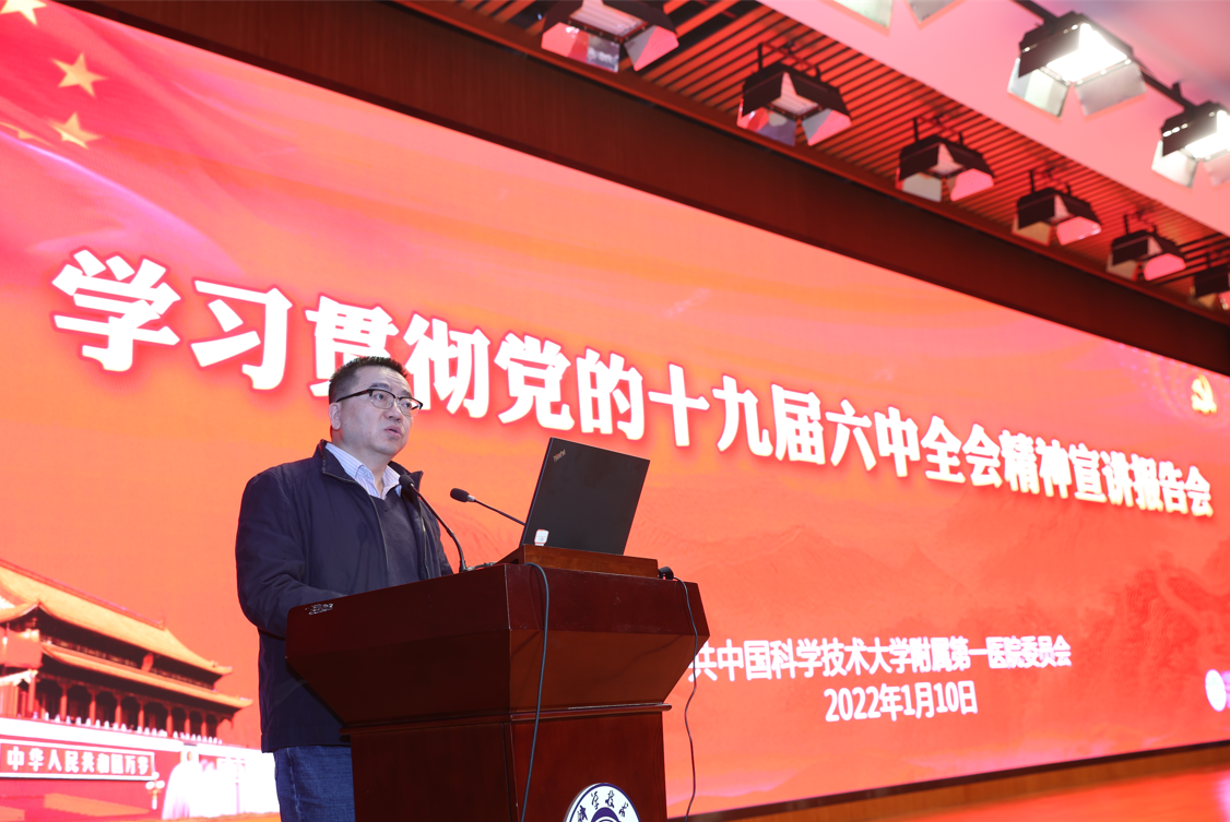 刘连新强调,学习宣传贯彻落实好全会精神是医院当前和今后一段时期的重要政治任务,也是引领和推动医院事业高质量发展的重要支撑。刘连新要求,全院党员领导干部和广大职工要认真学习领会十九届六中全会精神,坚持以习近平新时代中国特色社会主义思想为指导,从党的百年奋斗历程中汲取智慧力量;不仅要领会全会精神、入脑入心,更要学以致用、埋头苦干,将实现个人理想与医院发展、人民健康和国家需要结合起来,把“小我”融入“大我”;把学习贯彻全会精神与常态化抗疫、医院2022年中心工作紧密结合起来,不断提高政治站位,坚定政治信仰,持续激发以史为鉴、开创未来、勇毅前行的奋进力量,巩固拓展党史学习教育成果,推动理论学习成果转化为工作实效,以强烈的历史使命感奋进新征程、建功新时代。(党委组织部 王俊/文 党委宣传与统战部 黄歆/图 李矗/审核)