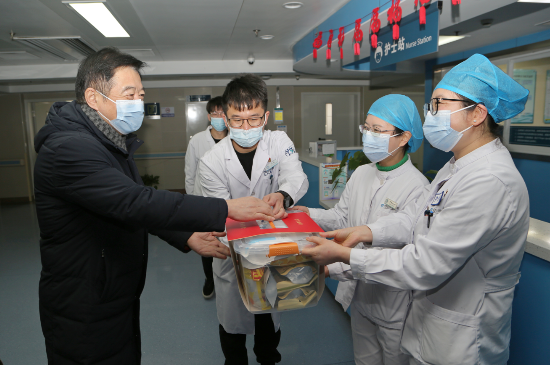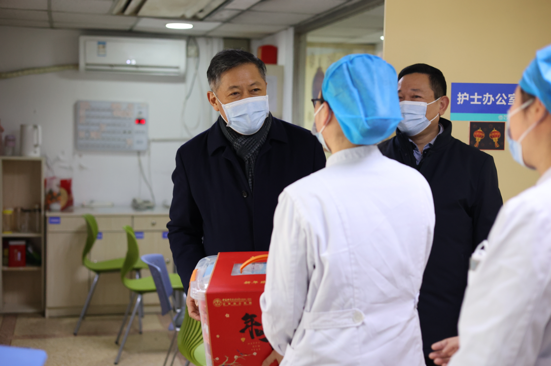 金牛奋蹄辞旧岁,瑞虎生威迎新春。2月1日,农历虎年正月初一,是中华民族传统的新春佳节,院党政领导班子成员带领职能部门负责同志、管理干部深入各科室、部门,看望慰问春节期间坚守在疫情防控和工作岗位上的一线医务人员。