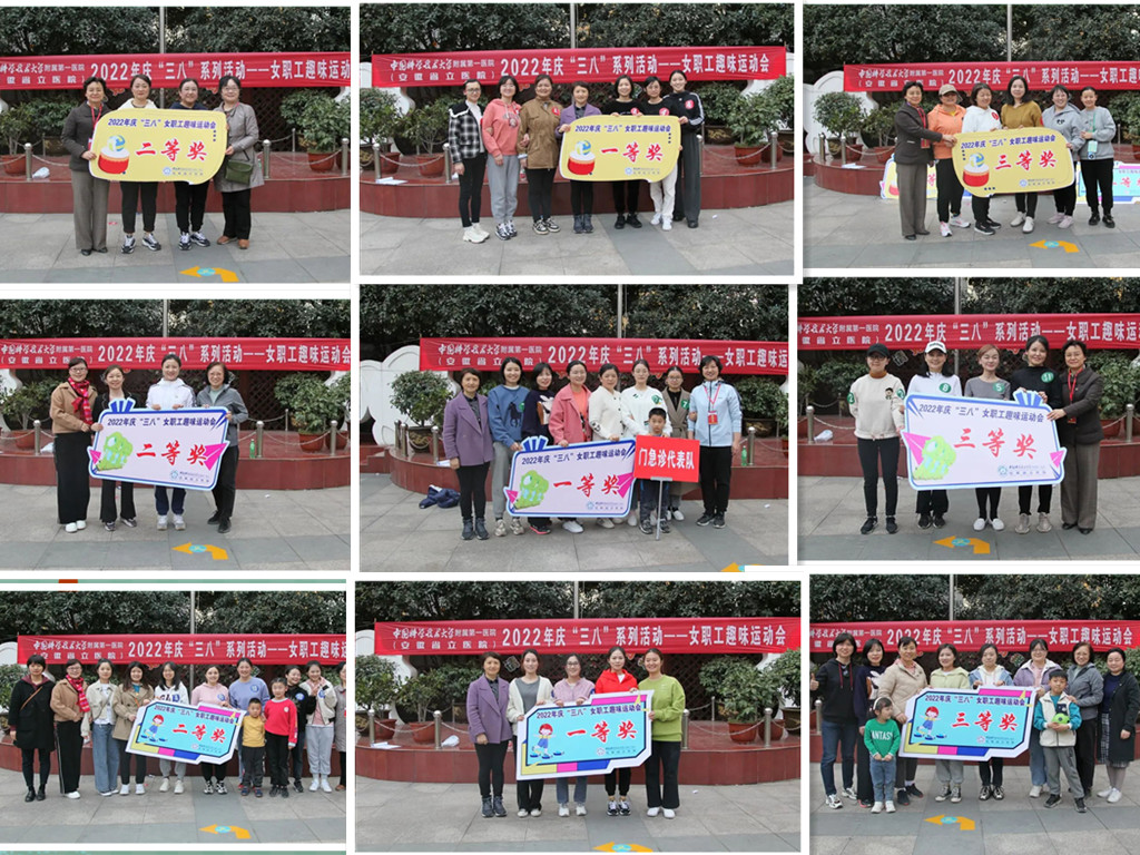 经过紧张而激烈的比赛,击鼓颠球项目南区分工会二队获得一等奖;南区分工会一队、外科分工会一队获得二等奖;机关分工会、内科分工会一队、医技分工会、门急诊分工会获得三等奖。同舟共济项目门急诊分工会获得一等奖;南区分工会一队、内科分工会一队获得二等奖;外科分工会二队、西区分工会、医技分工会、内科分工会二队获得三等奖。摸石头过河项目南区分工会一队获得一等奖;南区分工会二队、外科分工会一队获得二等奖;机关分工会、内科分工会二队、门急诊分工会、西区分工会获得三等奖。