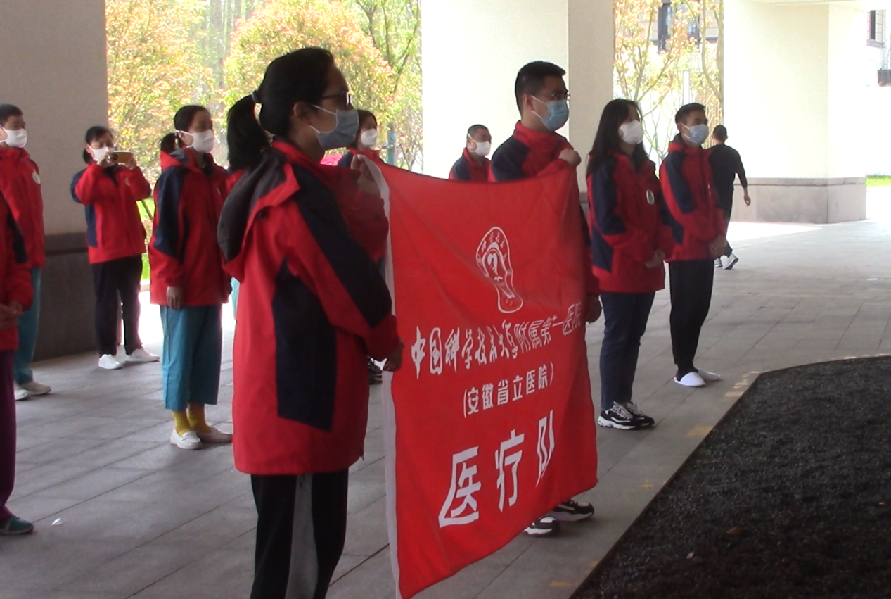 葛均波代表院领导班子向全体队员表示亲切的慰问。他指出,医疗队前期科学筹划、有效衔接、辛勤工作,在安徽省援沪医疗队前方指挥部带领下,与上海新华医院密切配合,工作成效赢得各方高度称赞。医疗队在沪支援,代表着安徽和中国科大的整体形象,要充分展现医院风貌、医疗水平,弘扬医者职业精神。方舱院区以轻症和无症状感染者为主,医疗队既要做好救治,更要关心患者,做好人文关怀。葛均波最后叮嘱队员们,一定要严格执行院感防控要求,切实做好个人防护,医院7000多名同事期盼着大家平安凯旋。