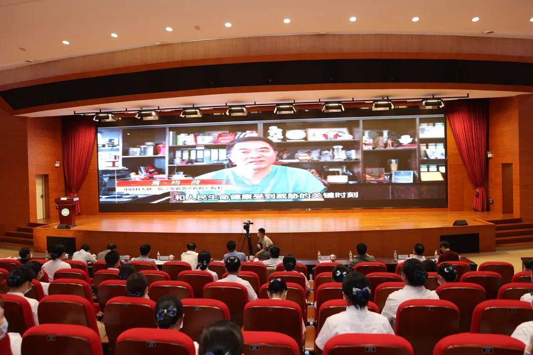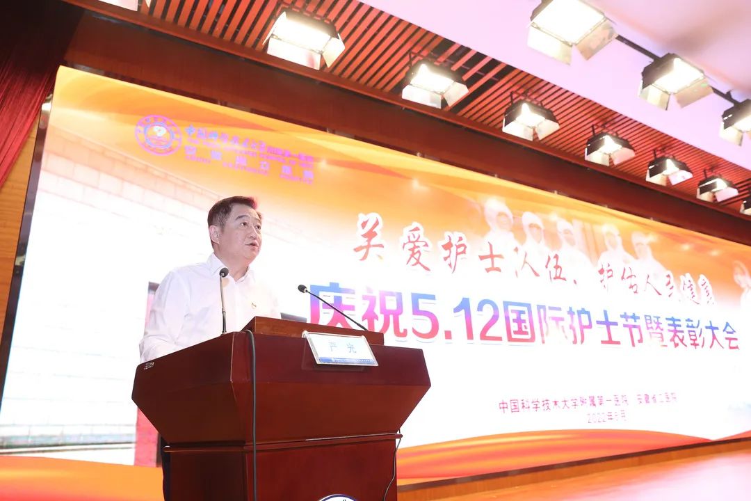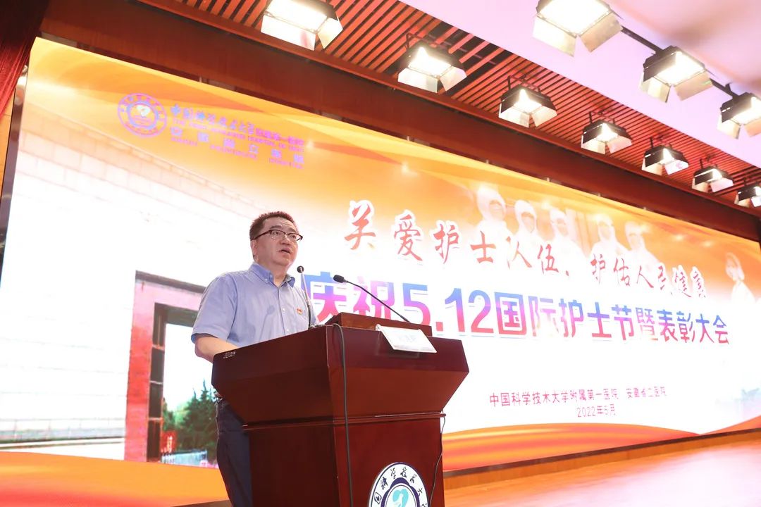 院长葛均波院士通过视频讲话,他指出,护理工作作为医学服务的重要内容,在保障患者生命健康和促进康复等方面,发挥着不可替代的作用。在重大自然灾害、流行病和人民生命健康受到威胁的关键时刻,毫不退缩、坦然面对,用勇敢的身躯,筑起一道道“守护生命”的坚实防线,用行动实践着投身护理事业的诺言,践行着南丁格尔精神。他希望护士同志们不辜负人民的信任和重托,刻苦学习,锐意进取,从服务态度、服务能力上超越自己,为维护人民群众的生命健康,建设健康安徽、健康中国不懈努力。