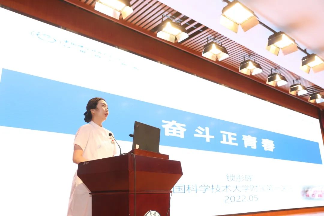 优秀护士代表、新生儿重症监护室护士锁彤晖作《奋斗正青春》的发言。
