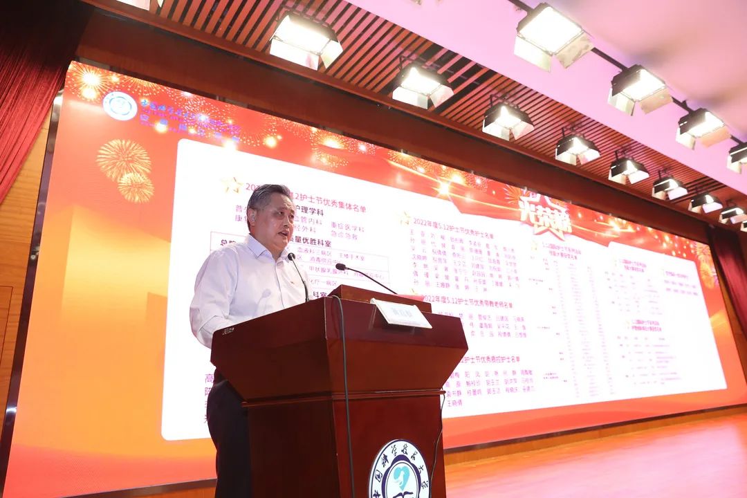 执行院长严光在讲话中表示,在今年新冠肺炎疫情再次肆虐横行之际,医院护理团队第一时间“援前线、守关口、保病房”,驰援上海方舱、助力社区核酸采集和疫苗接种、筑牢发热门诊和病房管理的安全防线,战斗在疫情防控各条战线上,用实际行动践行了伟大的抗疫精神和南丁格尔精神。