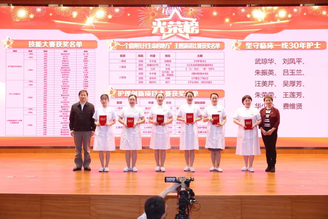 在院党委领导下,全院护理人员不忘初心、护佑人民群众健康;不辱使命、共克时艰逆行抗疫;不负重托、坚守“前线”保障“后方”,在这期间涌现了一大批先进典型。党委副书记、纪委书记黄超群宣读了表彰名单,获奖集体和个人代表登台接受表彰。
