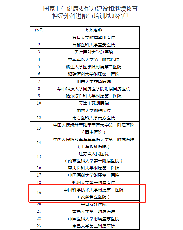 近日,国家卫生健康委能力建设和继续教育中心公布首批50家全国神经外科进修与培训基地名单,我院成为首批入选的基地之一。