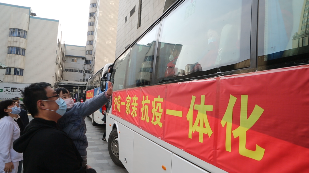 ▲23日上午,医疗队员乘坐大巴,出发回家!