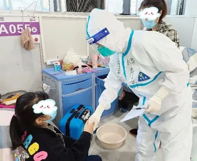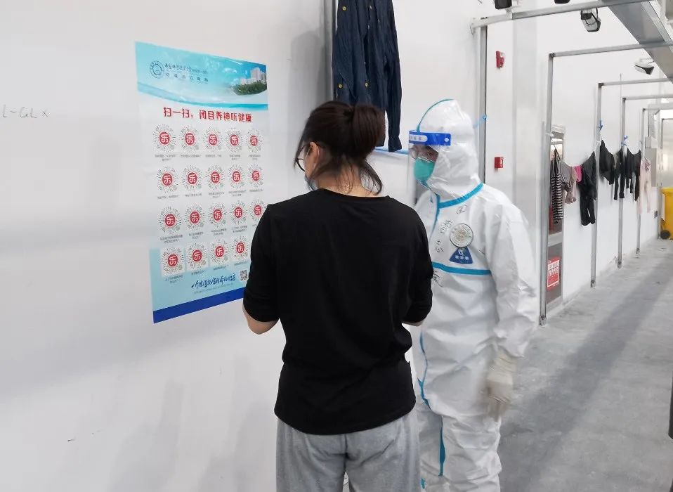 ▲医疗队员为工业园方舱出院患者进行出院宣教