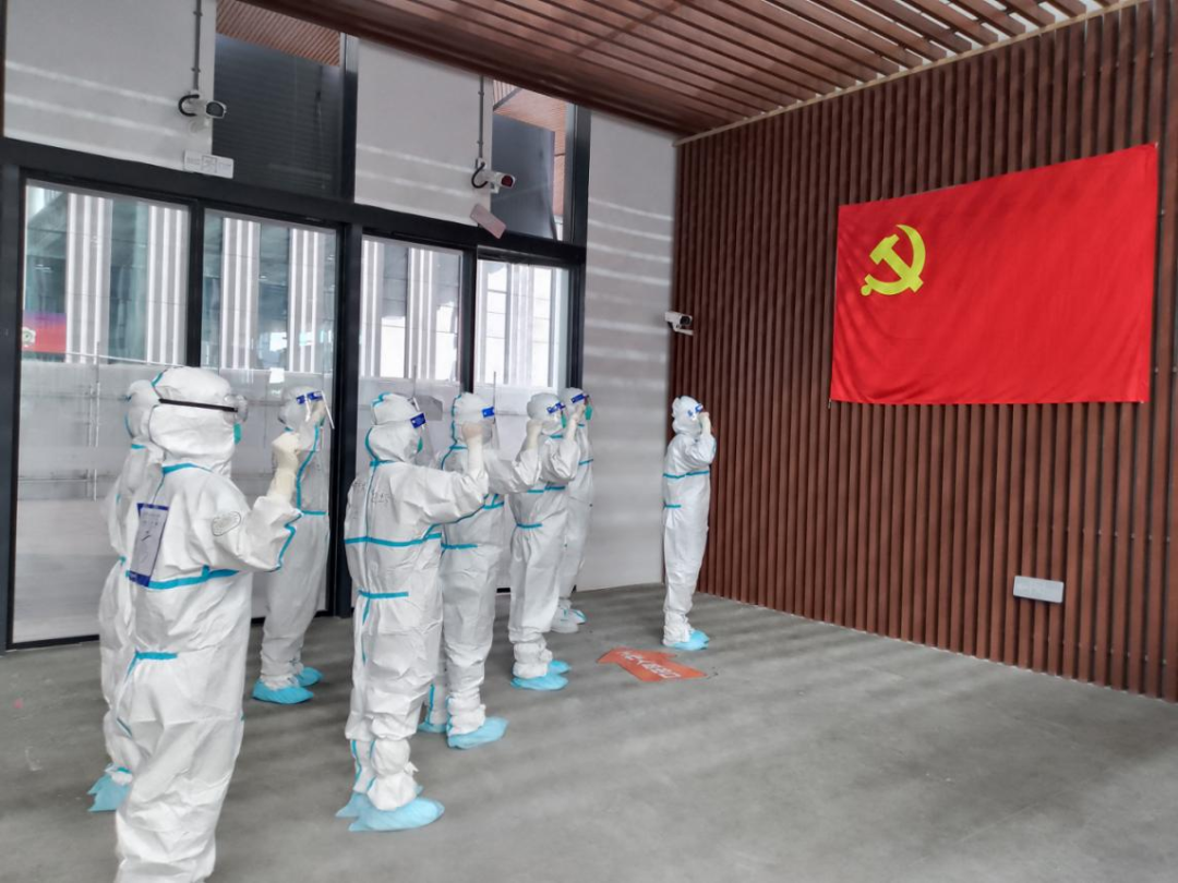 院区始终坚持党建引领,强化责任担当,成立三个临时党支部,设立党员示范岗,危险岗位党员带头,关键环节党员把关,首次进舱、核酸采集、危重患者抢救转运等关键节点都有党员身影。成立青年突击队,9名青年突击队队员圆满完成支援崇明工业园方舱和长兴岛定点医院的相关工作。
