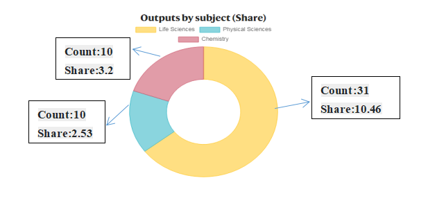 此次数据纳入了2021年3月1日至2022年2月28日期间的统计数据。我院高质量论文发表的期刊依次为生命科学领域,化学和物理领域,2018年分数计数得分实现零的突破,近3年持续快速发展,2021年达到了15.74。