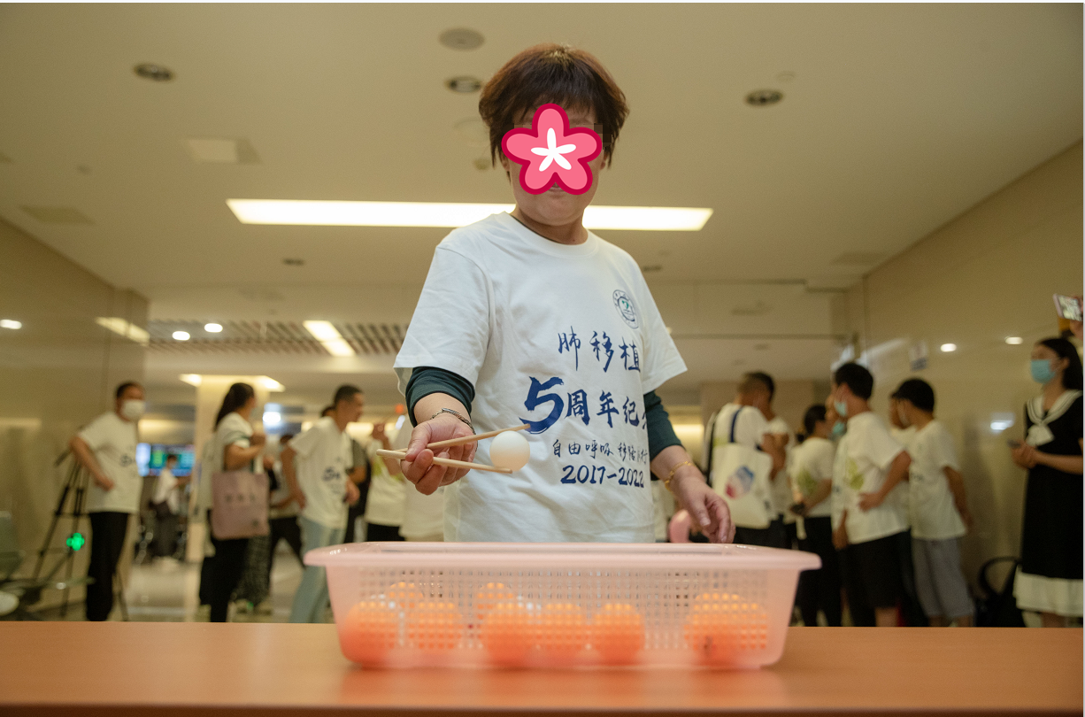 “移”友运动会上,“运球帷幄”“气宇轩昂”等趣味游戏现场,掌声与加油声不断,吹纸片、吹气球,“移”友的肺活量与常人并无不同,大家共同分享着移植后的新生的喜悦。