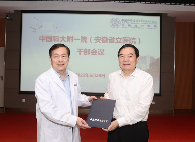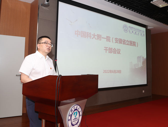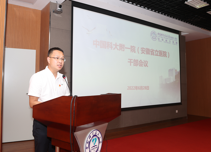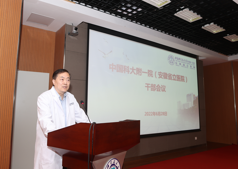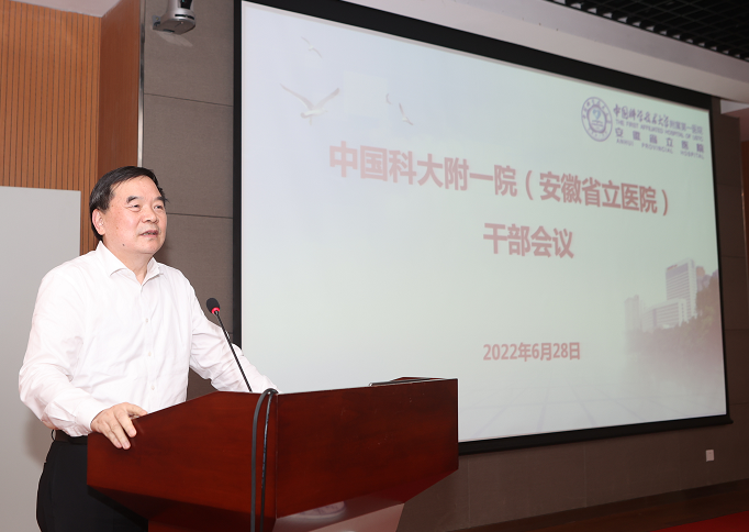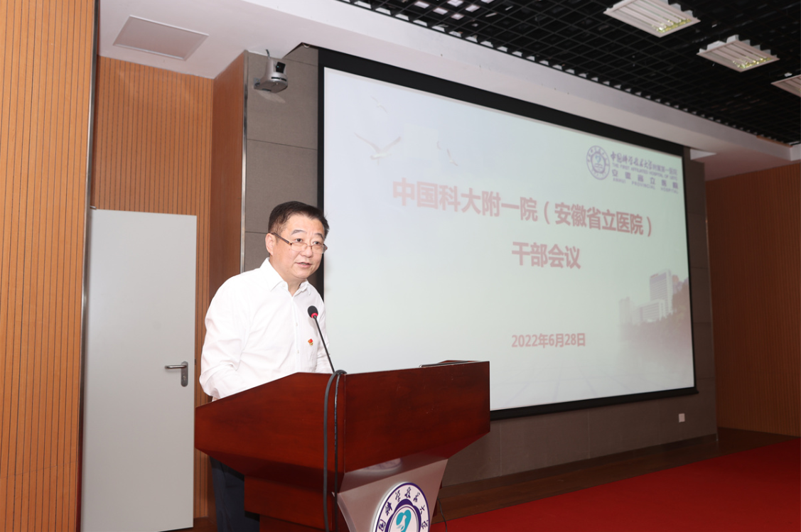 2022年6月28日下午,我院召开干部大会,宣布副院长任命决定。校长包信和院士,校党委委员、校长助理薛天,校党委组织部常务副部长申成龙,省卫生健康委人事处一级主任科员张卓然出席会议,院领导班子成员和中层管理干部参加会议。大会由执行院长严光主持。