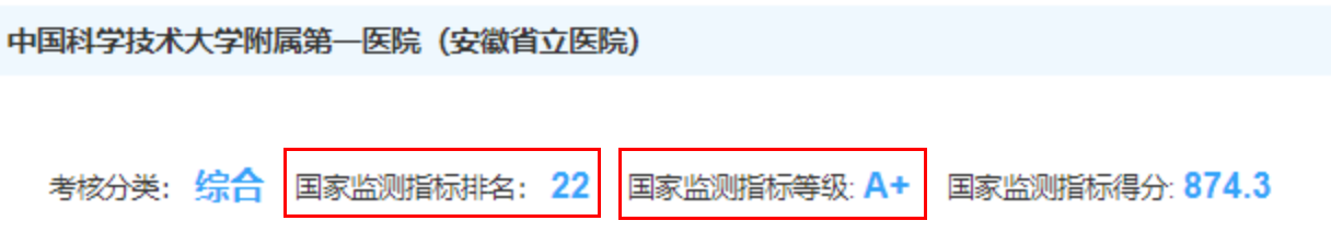 7月7日下午,国家卫生健康委公布2020年度三级公立医院绩效考核国家监测指标考核结果,全国2508家医院参评。在1342家三级综合性医院中,中国科学技术大学附属第一医院(安徽省立医院)位列22位,连续三年考评等级为A+,继续领跑安徽。其中,医院四级手术人数全国第7位,科研经费总额全国第27位,技术难度(CMI)全国第30位。