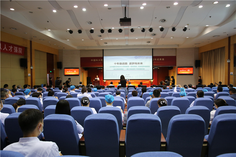 西区广大干部职工将以一期工程启用十周年和二期工程即将投入使用为契机,在院党委的坚强领导下,在西区党政班子带领下,秉承“红专并进,理实交融”的科大校训和“仁术济世,求实创新”的院训,在“理工医交叉融合、医教研协同创新、生命科学与医学一体化发展”的“科大新医学”理念引领下,继续同心同德、顽强拼搏、开拓进取,为推动西区高质量发展,建设科大风格、人民满意的一流医院贡献力量。(西区综合办 崔媛媛文/图 肖剑/审核)