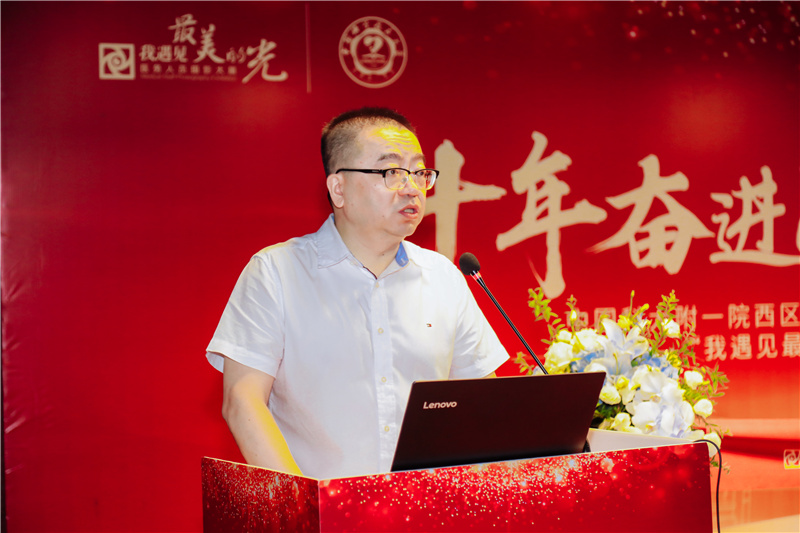 刘连新充分肯定西区十年取得的巨大进步和可喜成绩,同时提出三点要求:一要坚持党建引领,加强党的领导和建设;二要坚定不移地践行科大新医学理念,引领医院高质量发展;三要继续深入推进党风廉政建设,营造风清气正的政治生态。