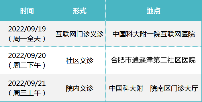 错过这些活动也没关系!为满足群众健康需求、为群众办实事,中国科大附一院目前已经设立记忆障碍门诊,南区和总院均有专业团队坐诊,为每位就诊者量身定制健康管理和治疗方案。具体出诊时间和地点如下: