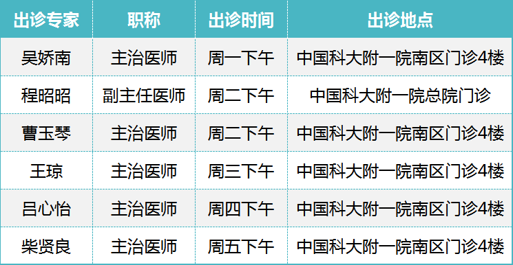 门诊时间:南区/周二上午专病门诊。