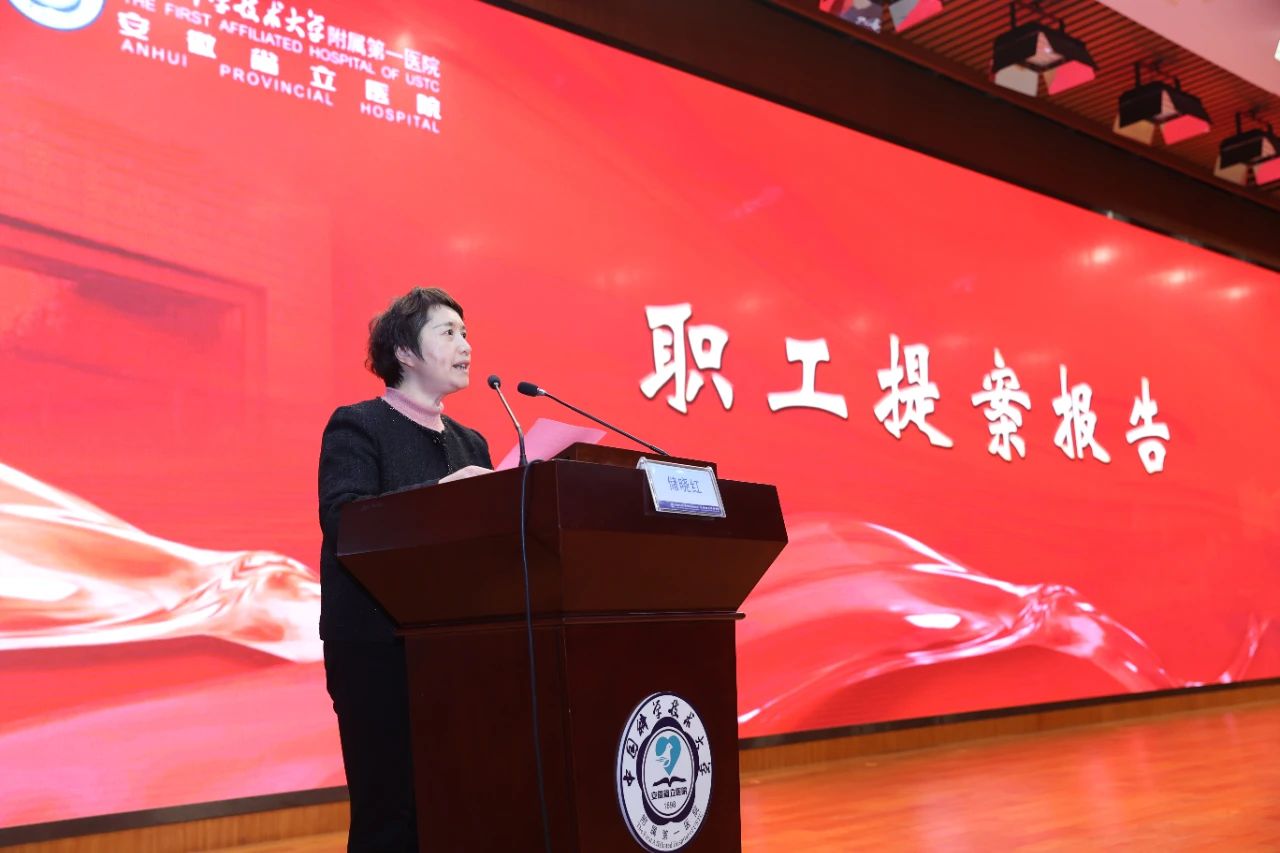 ▲党委委员、副院长、工会主席储晓红作职工提案报告