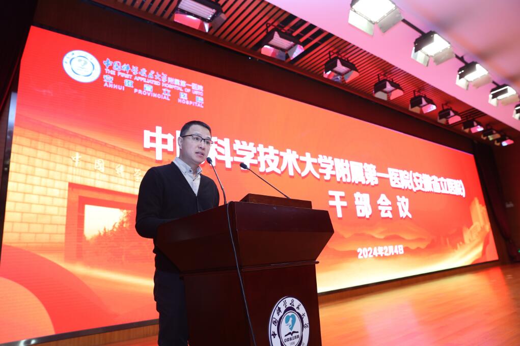 钱立庭同志深情回顾了在院多年的工作历程,真挚感谢组织、领导和同事们的培养信任、指导帮助和理解支持,为能与中国科大附一院共同成长感到骄傲,表达了对“一流医院”建设的美好祝愿。