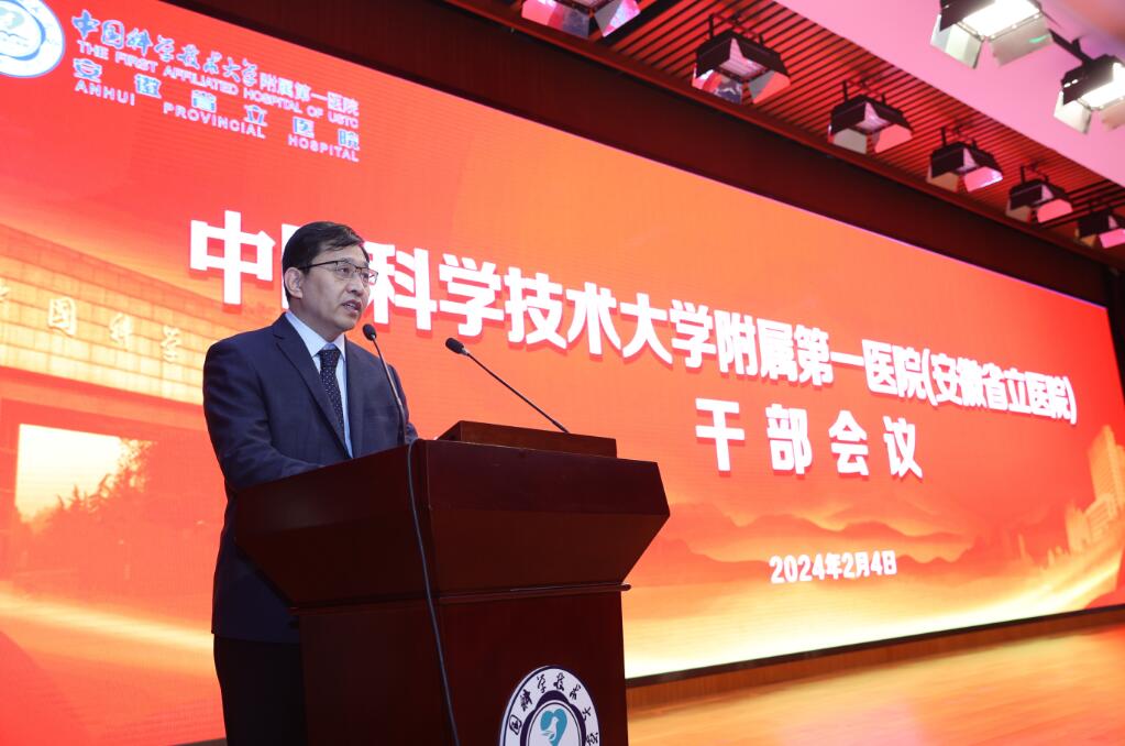薛天最后强调指出,附一院领导班子要进一步凝聚共识、提振信心、鼓足干劲,紧紧抓住“科大风格、人民满意”的一流医院的目标任务,团结带领医院广大干部职工,以强烈的事业心和责任感做好医院各项工作,在不负“人民”的新使命中跨越赶超,积极践行“科大新医学”,推动大学“双一流”建设,为回报和服务江淮人民作出新的更大贡献,以优异成绩迎接大学第十三次党代会的胜利召开。(党委组织部 王俊/文 党委宣传与统战部 黄歆/图 李矗/审核)